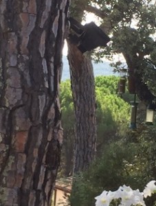 A general view from our balcony. As you can see there are lots of huge umbrella pine trees – 2 close to us and 2 in the background at the bottom of our plot.