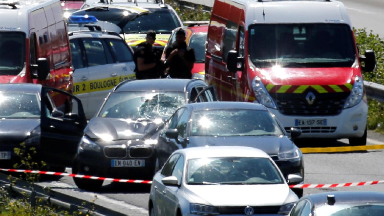 Chenes Aug/Sept 2017 » Police and rescue forces are seen at the scene where the man suspected of ramming a car into a group of soldiers on Wednesday in a Paris suburb has been shot and arrested on the A16 motorway