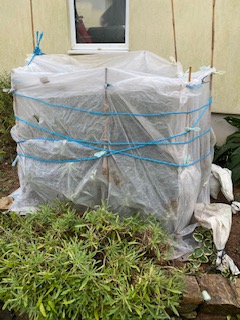 Not the prettiest sight, especially right outside the door, but sitting snuggly under there is a branching echium, hoping to make it to its first Easter!