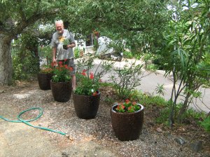 At last I’ve got round to opening a new page. We’ve been very busy doing all the DIY after a few months away. Regular readers will remember that I created a garden of Eden out of the wilderness – well, by virtue of a reverse miracle, it resembled the Sahara Desert again. Anyway I brought loads of plants this time stored rather craftily in the spare wheel compartment of Jean’s car and, although not ready for a photo yet, victory is in sight.