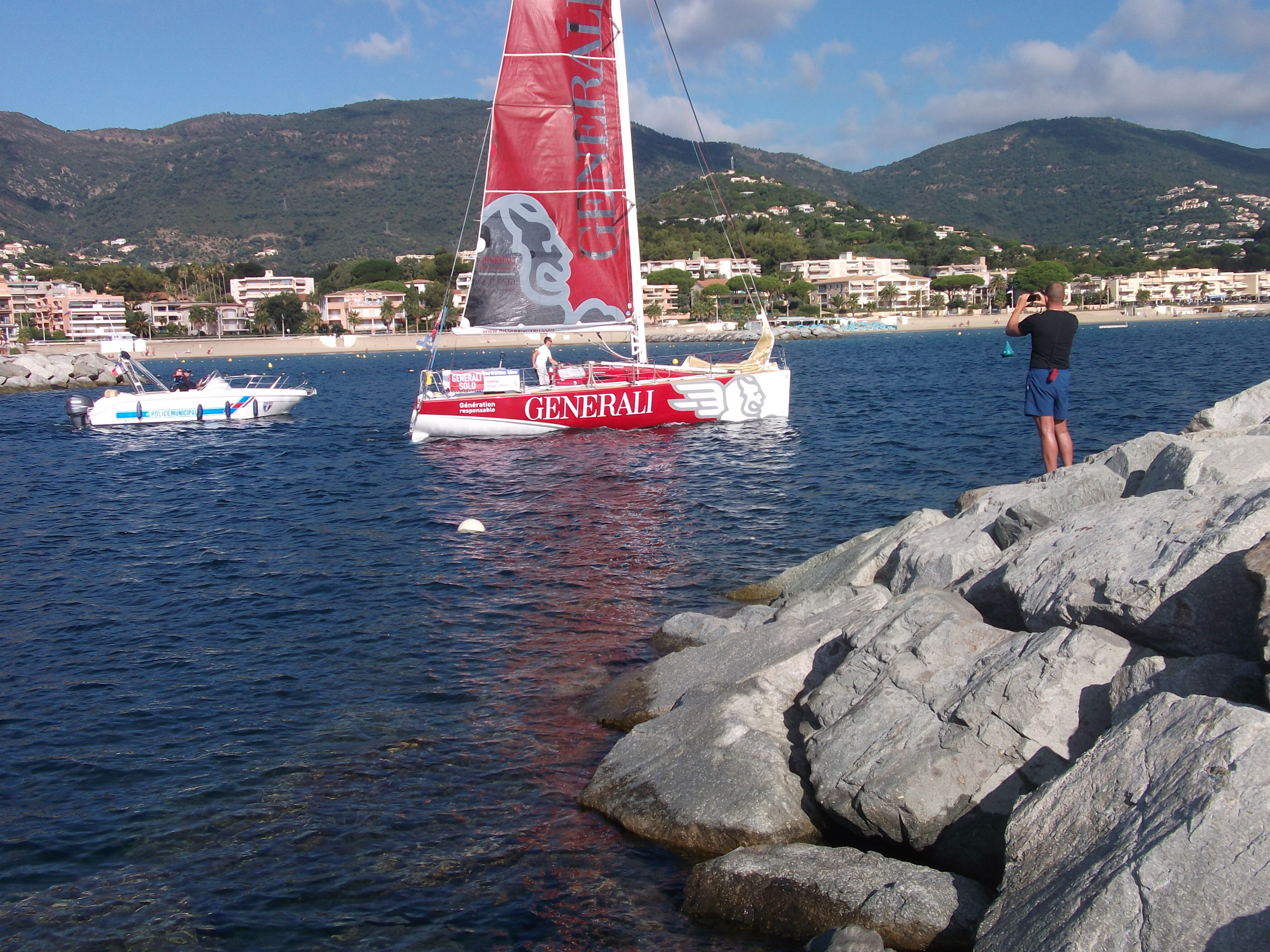 Sunday 22nd Sept. Improvement in internet this weekend so some more pics uploaded. Great spectacle at Cavalaire with the start of the Generali Solo Event. Unfortunately the sun was so bright I couldn’t see the screen to capture all the sail.
