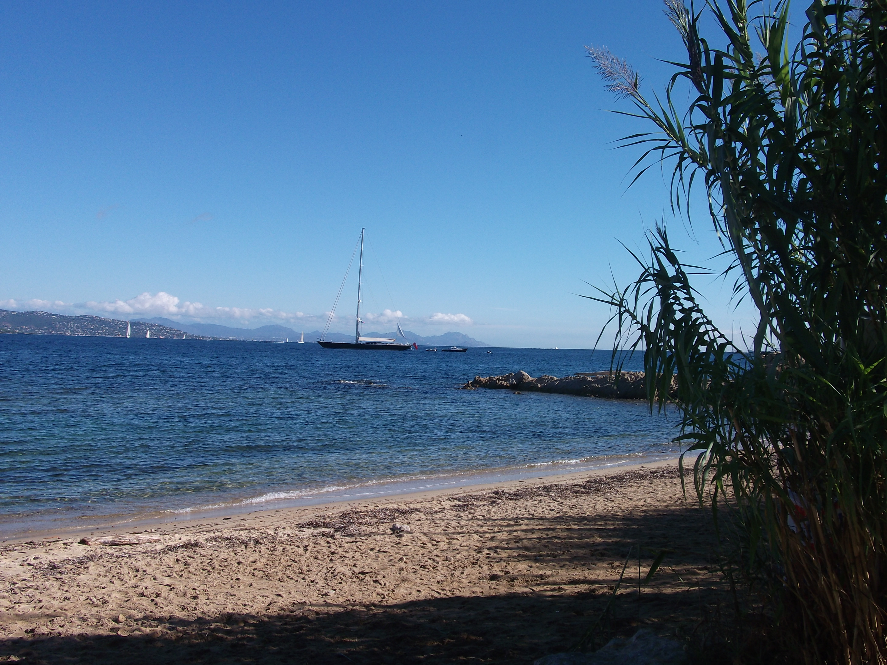 Sept. 9th One week nearly gone and we have settled into a routine: early morning walk while still cool, breakfast, work around house and garden, swim in pool, wine about 7.30 and evening meal. Today being my birthday we went for a combination of walking a boat rides to St Maxime and St Tropez, Refreshed plants in garden, swim and meal out at Azure Bleu on the beach. Variations on theme really!